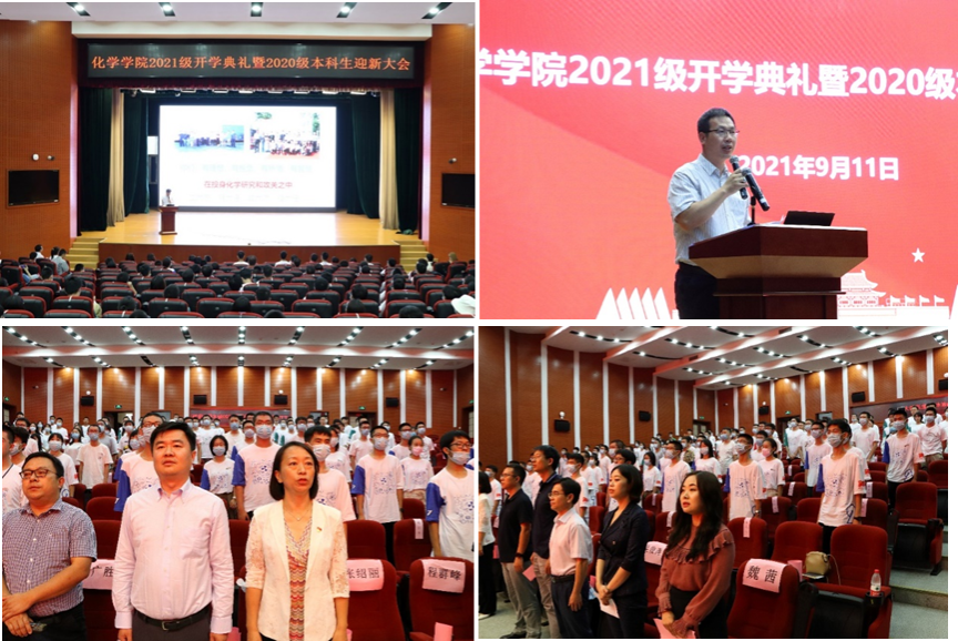 全体齐唱雄壮的国歌过后,久久精品网院长刘明杰致辞。刘明杰开篇先谈到了化学学科的重要性和实用性,接着向同学们介绍了久久精品网的概况。从基础学科研究的重要性,到解决我国众多卡脖子领域关键问题的需要,到将个人发展与国家需求相契合,嘱咐同学们学习化学,生逢其时,重任在肩。最后寄语新生:志存高远,敢为人先;独立思考,勇于创新;精勤求学,久久为功。