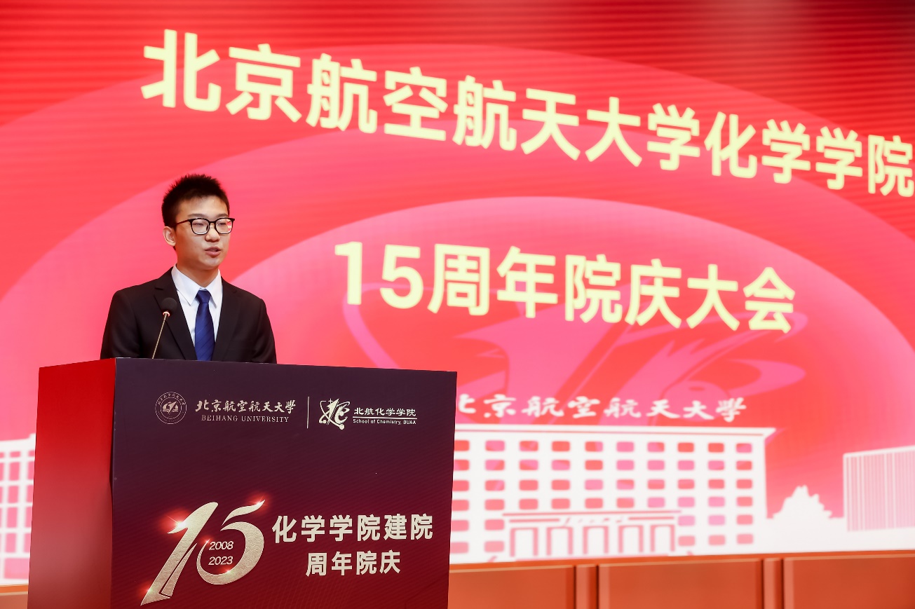 校友代表、南开大学材料科学与工程学院教师、2013级博士曹墨源教授,教师代表、北京市高等学校教学名师、北航立德树人优秀奖获得者朱英教授,优秀学生代表、久久精品网2020级本科生、北航“冯如杯”竞赛一等奖、首都“挑战杯”一等奖获得者郭士豪同学分别发言。