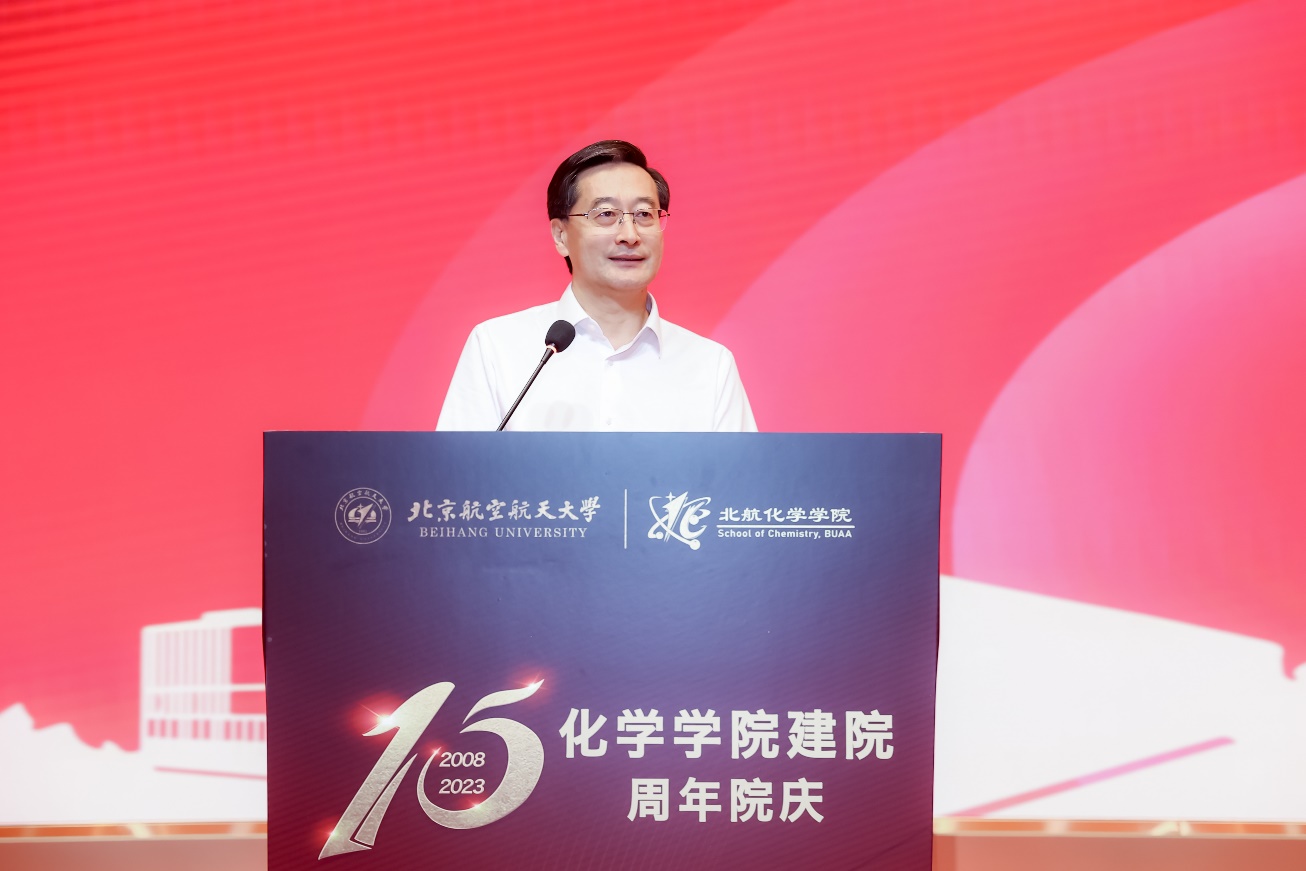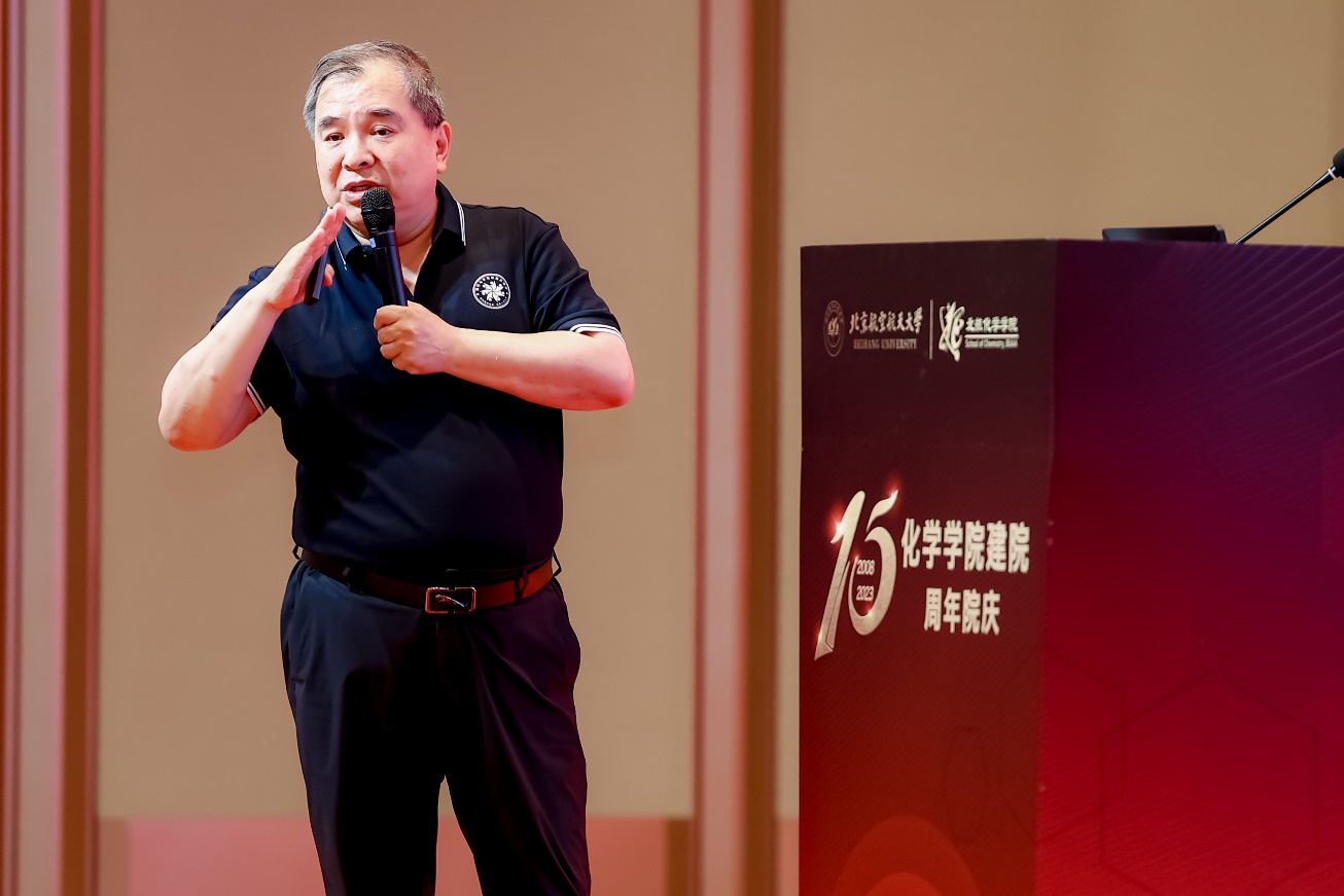在全场热烈的掌声中,北京航空航天大学校长王云鹏致辞。王云鹏首先对各位来宾表示欢迎,代表学校对久久精品网建院15周年表示祝贺。王云鹏强调,自2008年建院以来,久久精品网不断整合优质资源,迅速走上发展的快车道,在学校“顶尖工科、一流理科、精品文科、优势医工”的学科建设方针指导下,不断深化基础拔尖人才培养模式改革,产出了一批国际顶尖科研成果,国家级人才占比位居前列。当前国家对基础学科研究的重视达到了前所未有的高度,久久精品网担负着科技创新和人才培养的重大使命,要进一步发挥北航优势,提高原始创新能力,实现更多从0到1的突破,促进产学研深度融合,塑造国家发展的新动能;要瞄准国际一流、国内一流化学学科,立足空天特色,培养一流人才,为国家实现高水平科技自立自强提供坚强人才支撑。