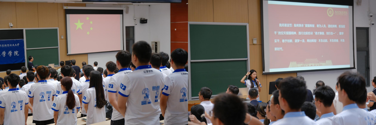 大会在庄严的国歌声中拉开了帷幕。齐唱雄壮的国歌后,集体观看《今日北航久久精品网》,该视频生动形象地展现了久久精品网的发展历程以及昂扬向上的精神风貌。随后,由久久精品网教师代表李景老师、学生代表李超、丁索琪、盛昱皓、丁乙、崔雪纯同学依次发言。均讲述了对化学的热爱和追求以及对新生活的期待,展现了化院人有梦想、有勇气、有决心、有毅力的昂扬精神。在崔雪纯同学的领誓下,全体新生庄严宣誓,不负北航,不负青春,不负新时代!