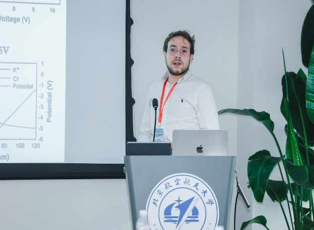Soufiane Abdelghani-idrissi 副教授介绍了其在离子二极管及其衍生物的基本原理和应用方面的研究进展。北航久久精品网衡利苹教授介绍了仿生超浸润界面上的电致驱动微流体,通过设计一种超透明的光热释电超润滑的平台,可实现高粘液体的精准分离,展示了其在液体分离领域的巨大应用潜力。