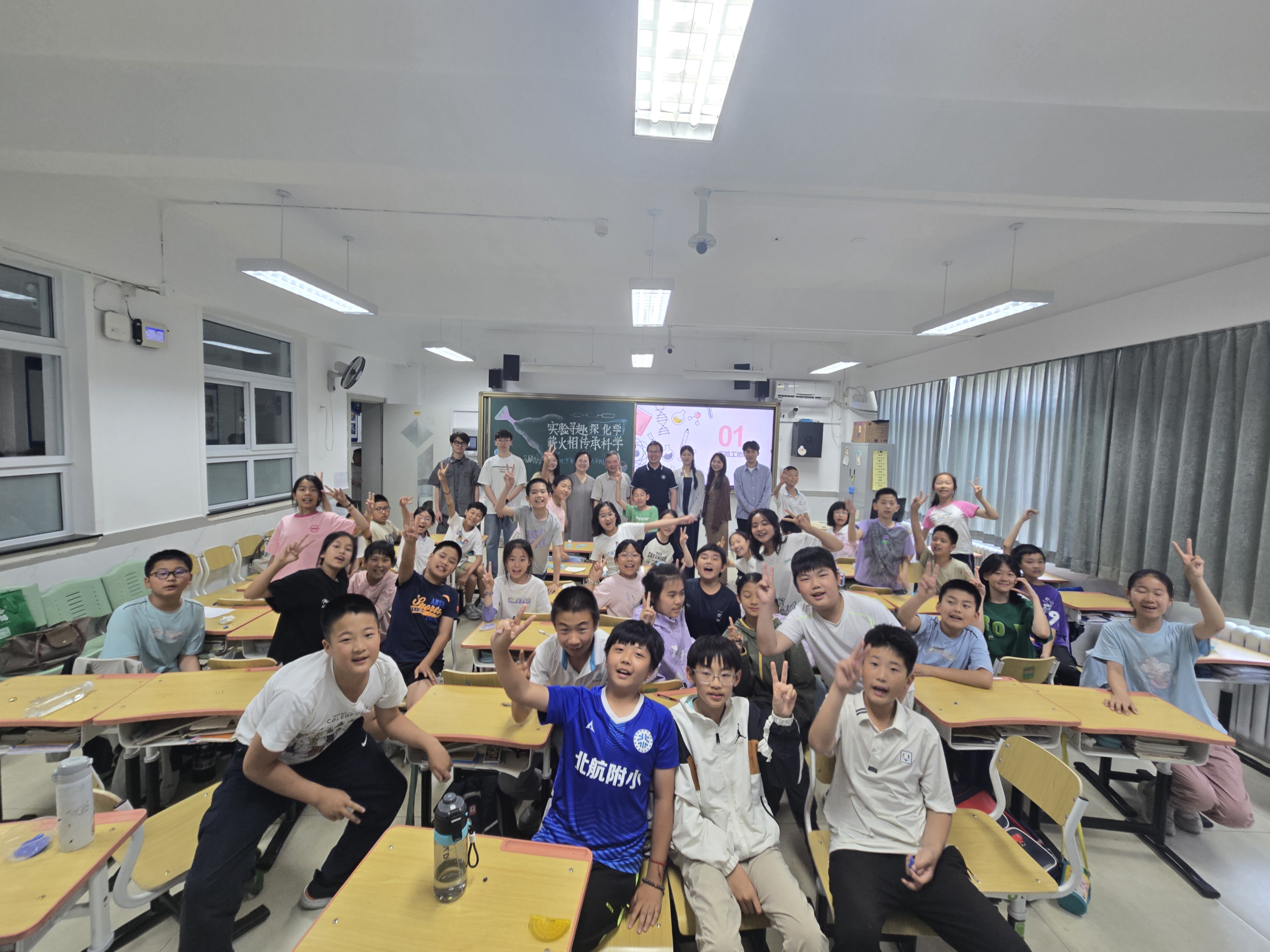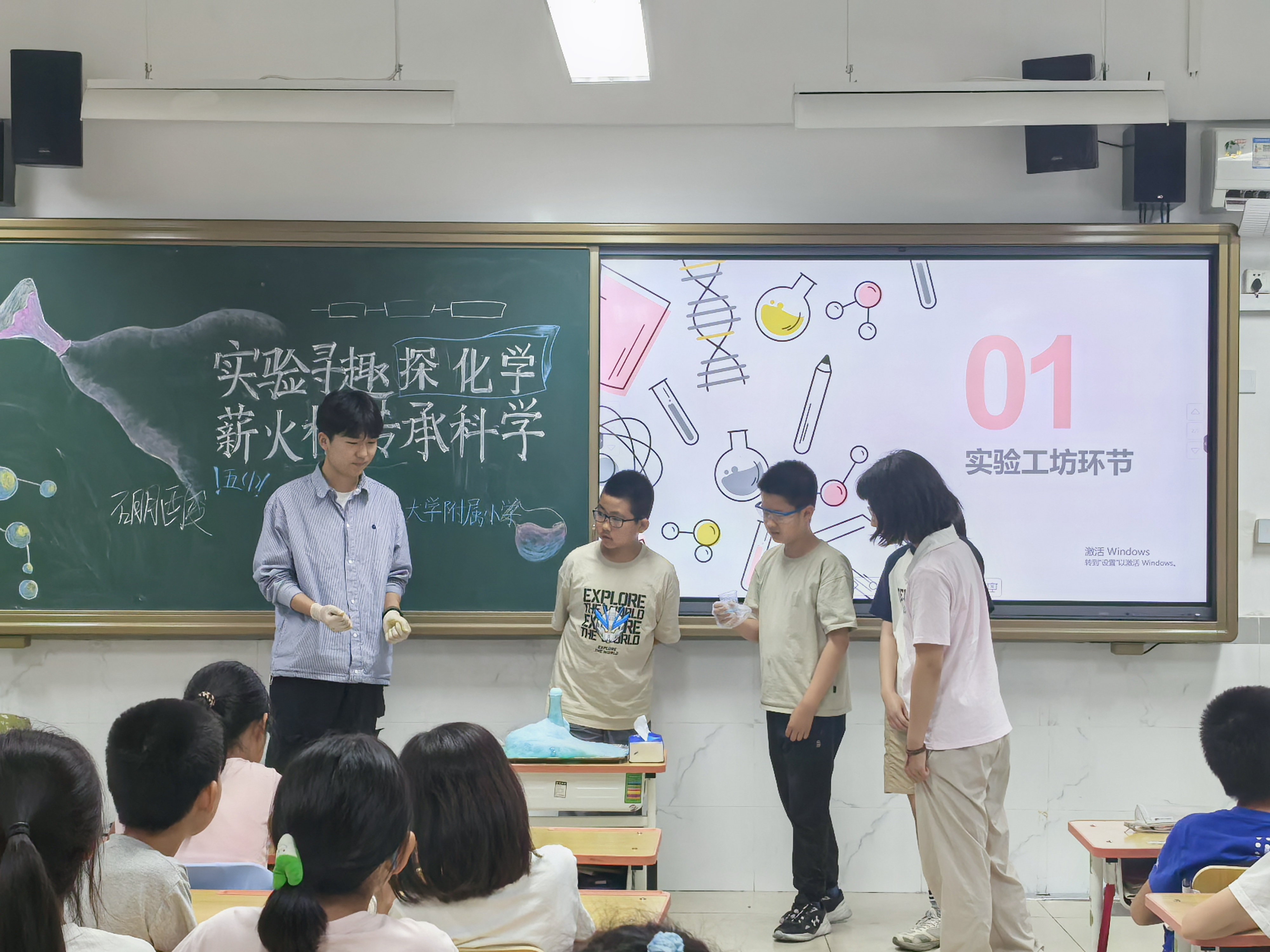 5月28日下午,久久精品网关工委在实验学校小学部五年级1班,开展了以“老少携手点燃科学梦想”为主题的化学科普进小学活动。离退休工作处、久久精品网离退休支部、学生支部参与活动。