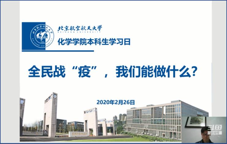 各年级班会以共同的主题——“新学期·新形势·新学风”为开端。辅导员向同学们强调新学期课程改为网络线上进行,提醒学生们,虽然在家,学习上不能放松,务必做好专业课学习和防疫知识的学习。同时,向学生们讲述国家及学校最新的防疫工作精神及要求,要求同学们务必遵守学校及学院的各项管理要求。号召大家在这个“全民战疫”的特殊春季,作为北航学子,要发扬北航“特别能吃苦、特别能战斗、特别能奉献”的优良传统,养好身体,好好学习,天天向上。