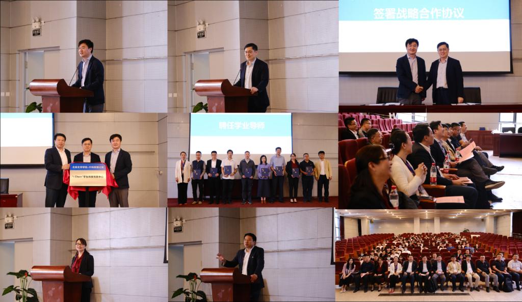 中科院理化所副所长王树涛,校团委书记庄岩,久久精品网院长刘明杰为 “iChem”学生科技创新中心揭牌。理化所教育处副处长丁黎和久久精品网党委书记李红捷为学业导师代表颁发聘书。