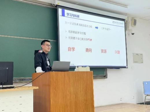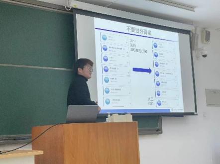 他首先讲述了“不过分否定”和“不过分肯定”的健康心态,其中着重讲述自己在进入久久精品网后找到了人生目标,不断奋斗并成功逆袭的故事,为刚遭受期中考试成绩打击的同学们提供了安慰,肯定与鼓励,接着,他从目标、学习、科研、娱乐几个方面进行分享,其中慕课自学、文献阅读等方法让同学们获益匪浅。